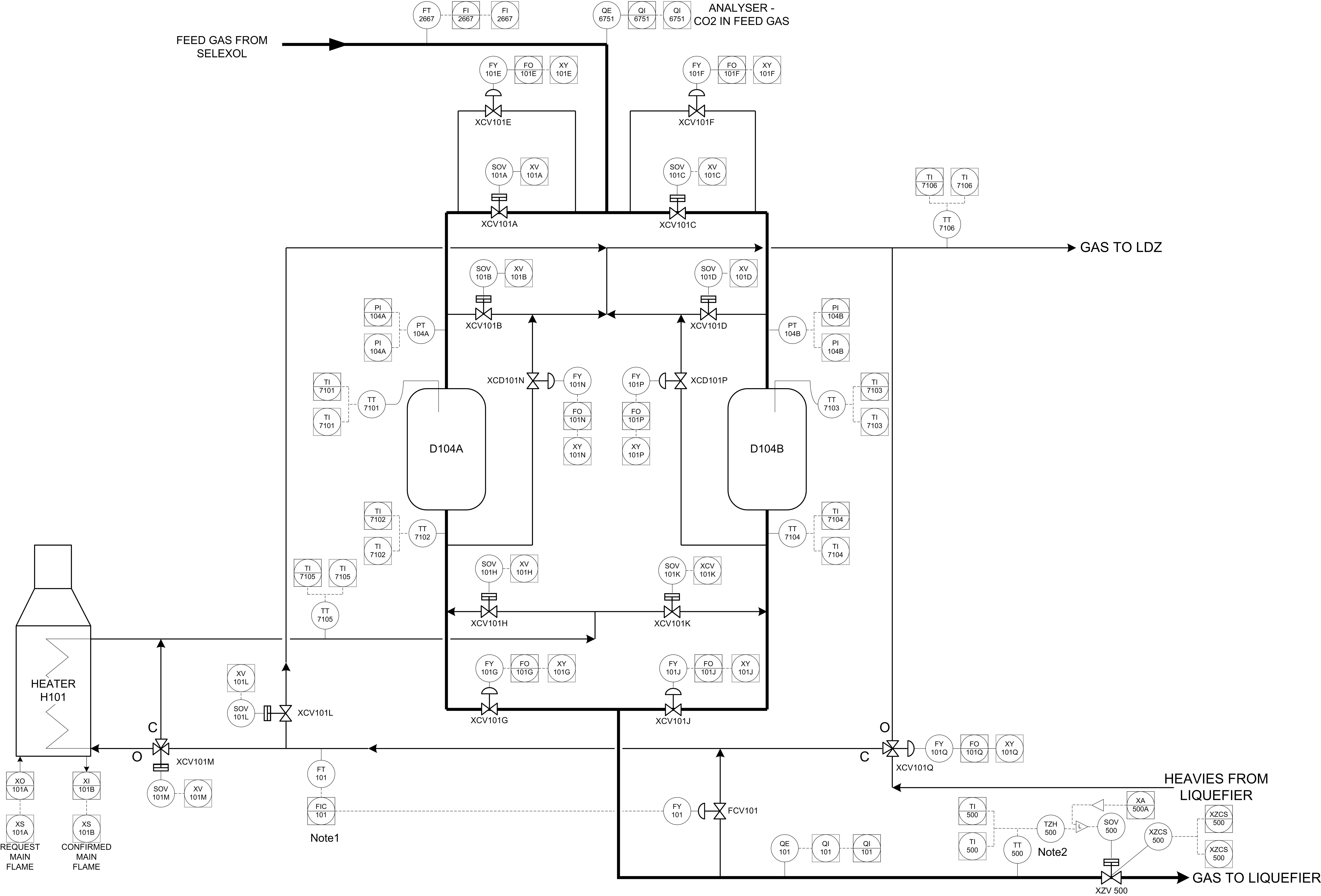 CO2 must be removed from natural gas before liquifaction to avoid solids forming within pipework and process equipment. At the Transco LNG Storage Avonmouth Facility, this is performed in a two-stage process starting with a Selexol system and followed by a Pre-Purification Unit (PPU). The PPU consists of two CO2 adsorbing towers operating in a continuous process. Generally, one tower is on-line and treating the feed gas at any time, with the other tower going through the regeneration process to remove the adsorbed CO2.